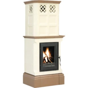 Kaminofen Kachelofen DOMOFIRE Veneto Keramik weiß knochenfarbe-braun 9 kW Mit Wärmespeicher