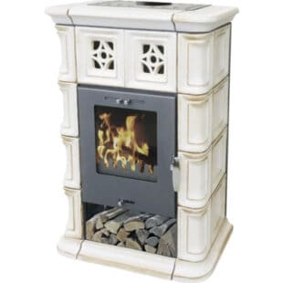 Kaminofen Kachelkamin DOMOFIRE Bergamo II. Keramik weiß knochenfarbe 7 kW Menge
