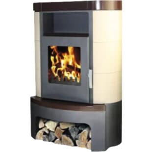 Kaminofen Kachelkamin DOMOFIRE Caorle II Keramik cappuccino braun 6 kW Mit Holzfach