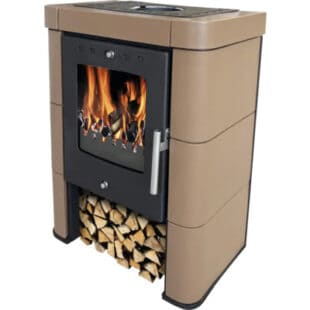 Kaminofen Kachelkamin DOMOFIRE Caorle II Keramik cappuccino braun 6 kW Mit Holzfach Menge