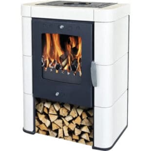 Kaminofen Haas & Sohn Tirol 343.15 Keramik creme 6 kW mit Holzfach