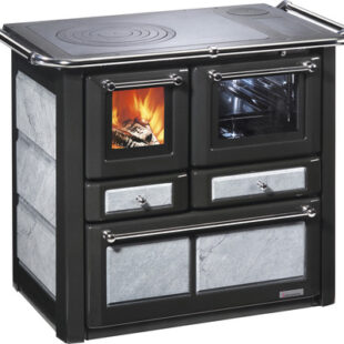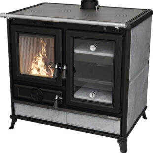 Festbrennstoffherd Thermorossi Viola Evo 12,1 kW mit Naturstein und Gusseisen-Kochfeld