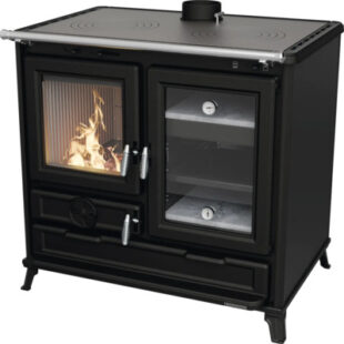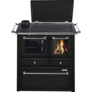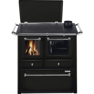Festbrennstoffherd Thermorossi Klara Evo Easy 12,1 kW schwarz mit Backofen rechts und Gusseisen-Kochfeld