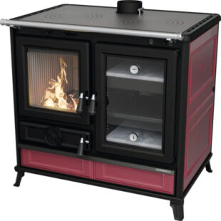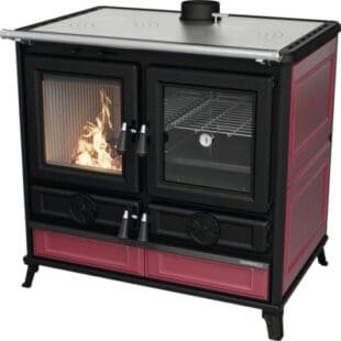 Festbrennstoffherd Westminster K85F bordeaux Backofen rechts mit Stahlplatten-Kochfeld