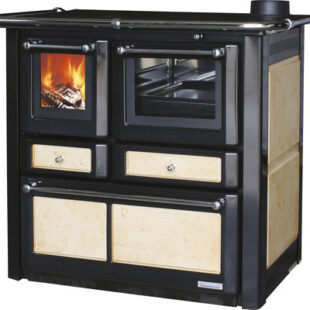 Festbrennstoffherd Thermorossi Margherita Evo 12,1 kW mit Naturstein und Gusseisen-Kochfeld