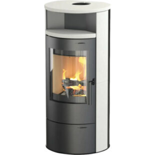 Kaminofen Panadero Oval 1 Stahl schwarz 8,7 kW mit Natursteinabdeckung und Holzfach Menge
