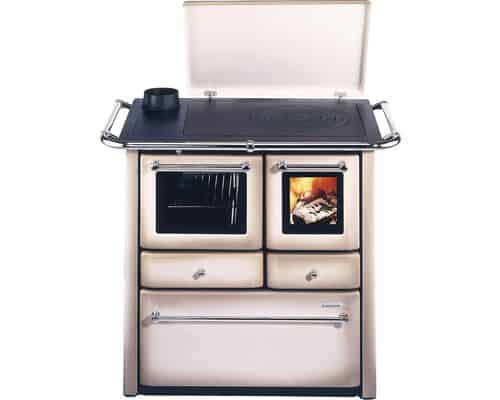 Festbrennstoffherd Westminster K85F creme Backofen links mit Stahlplatten-Kochfeld