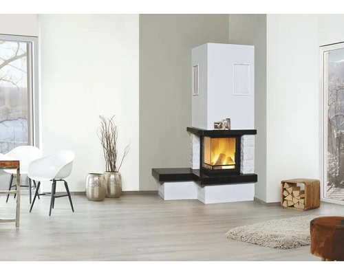 | Modell | Nebraska Bank links, Kaminbausatz mit echten Marmor naturweiss und Granit royal-black |