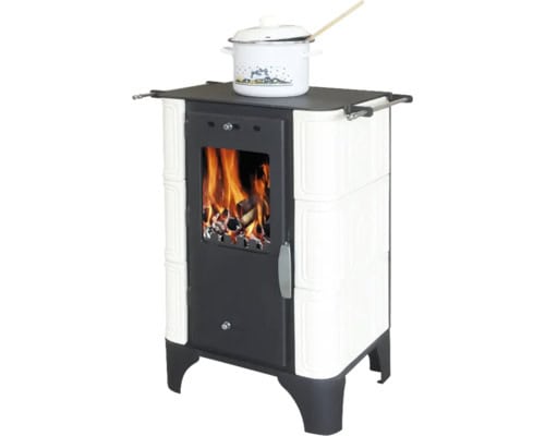 Kaminofen Kachelkamin DOMOFIRE Mira Keramik weiß knochenfarbe 6 kW