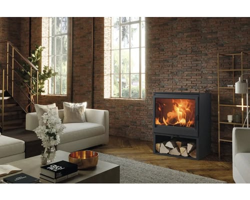 Kaminofen Panadero ACACIA Stahl schwarz 9,8 kW Mit Holzfach